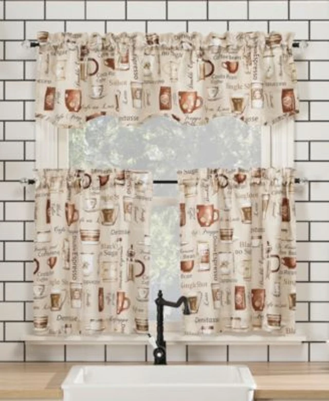 Kate Aurora Geometric Crescent 3 Piece Rod Pocket Cafe Kitchen Curtain Tier & Valance Set - in. Long