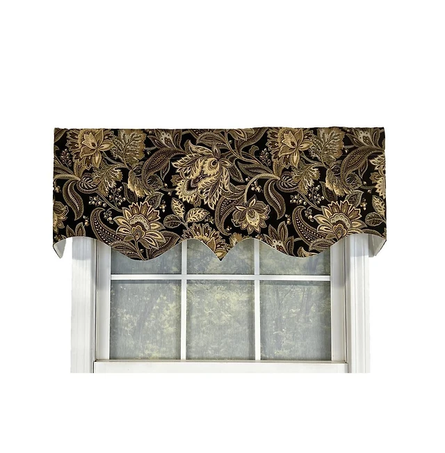 Rlf Home Virtue Glory 100% Cotton Rod Pocket Lined Window Valance 50" x 16" Black