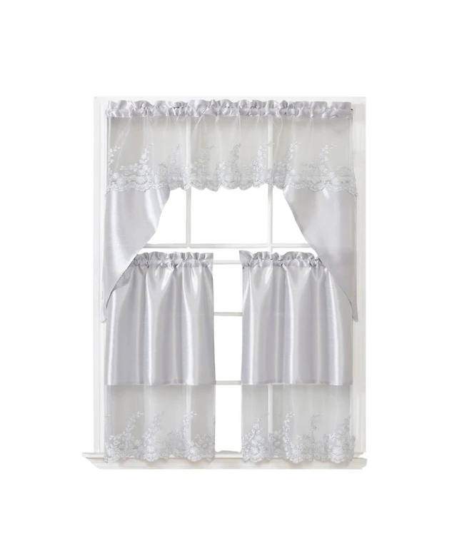 Rt Designers Collection Polyester Bethany Embroidered 3 Piece Kitchen Curtains Tier & Swag Set