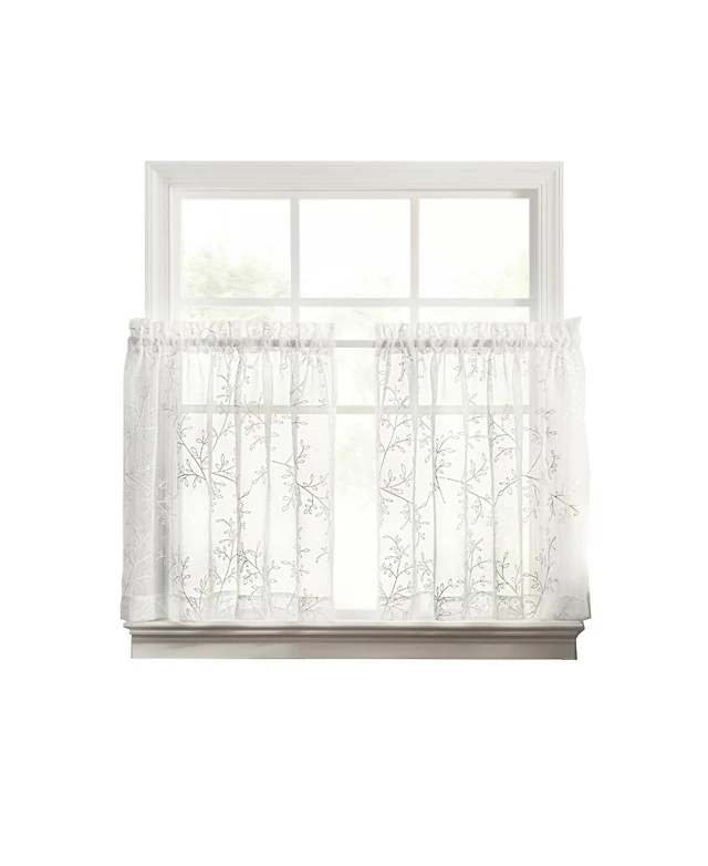 No. 918 Elodie Tonal Botanical Semi-Sheer Rod Pocket Kitchen Curtain Tier Pair