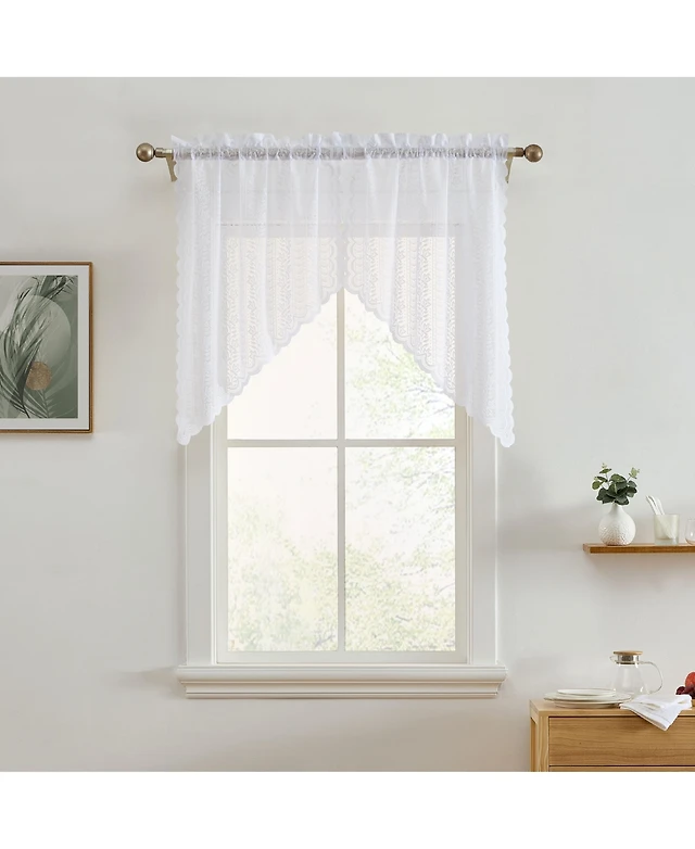 Bridget Embroidered Leaf Sheer Rod Pocket Window Tie-up Shade