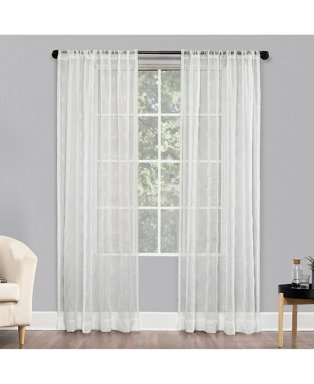 Kaz Embroidered Retro Curves Sheer Rod Pocket Curtains