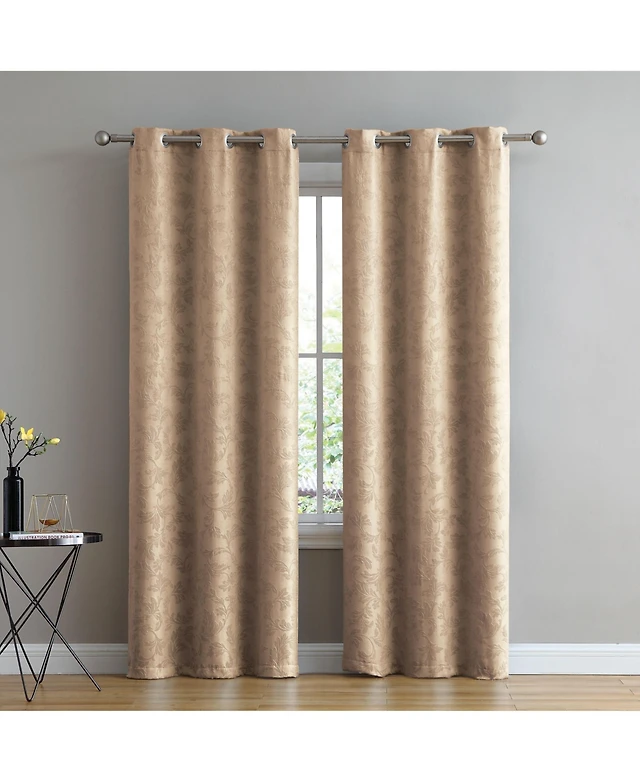 Satti Embroidered Leaf 100% Blackout Grommet Curtain Panel