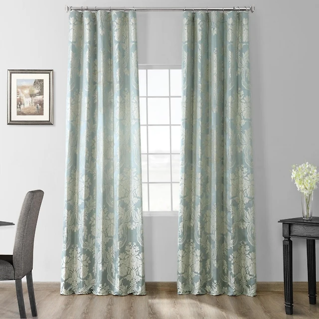 Half Price Drapes Zanni Multi Blue Green Geometric Faux Silk Jacquard Room Darkening Curtain