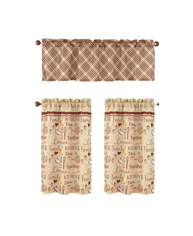 Rt Designers Collection Polyester Cucina Pasta Chef Slub 3 Piece Kitchen Curtains Valance and Tiers Set 52" x 18" Muticolor