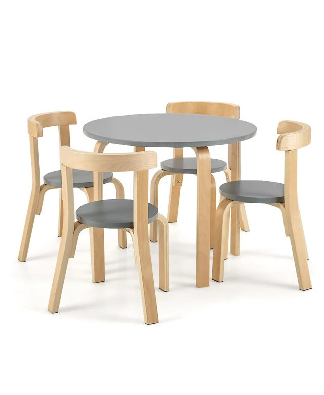 Gouun 5-Piece Kids Wooden Curved Back Activity Table and Chair Set withToy Bricks