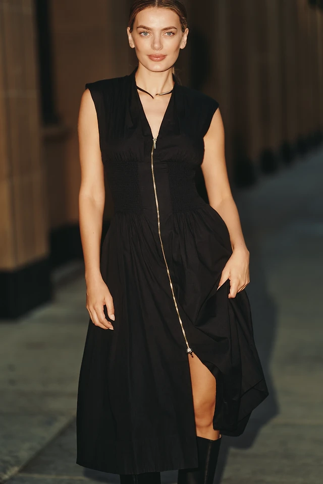 Maeve 100% Cotton Waisted Midi Shirt Dress