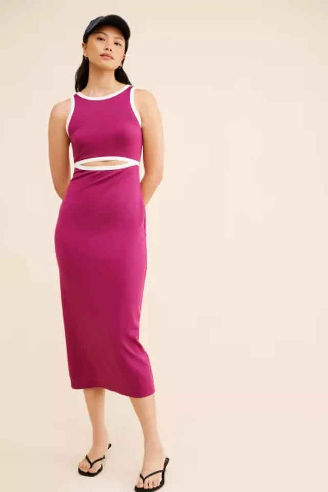 Row A Juniors' Sleeveless Scallop Trim Slim Midi Dress