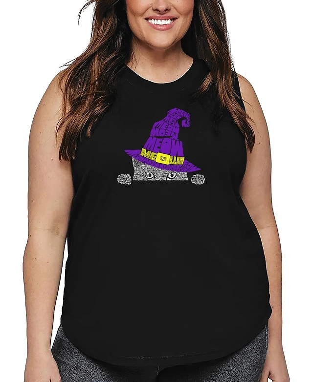 La Pop Art Plus Christmas Peeking Cat Word Tank Top