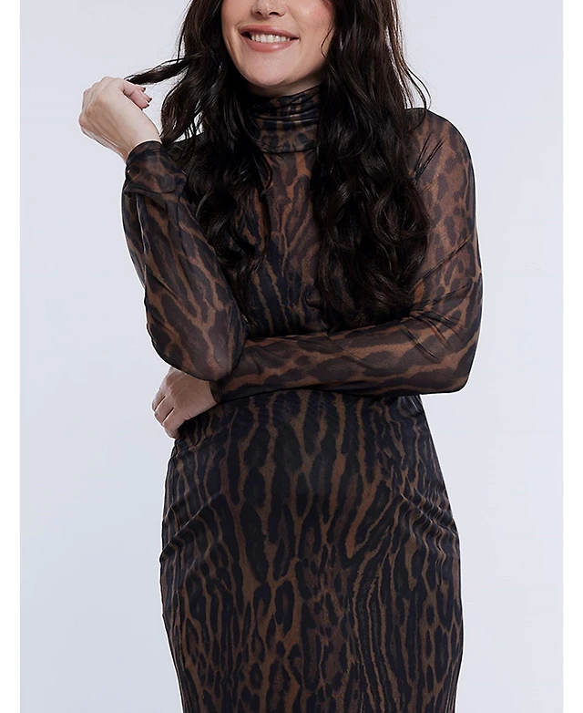 Hello Miz Women's Leopard Print Velvet Long Sleeve Maternity Top