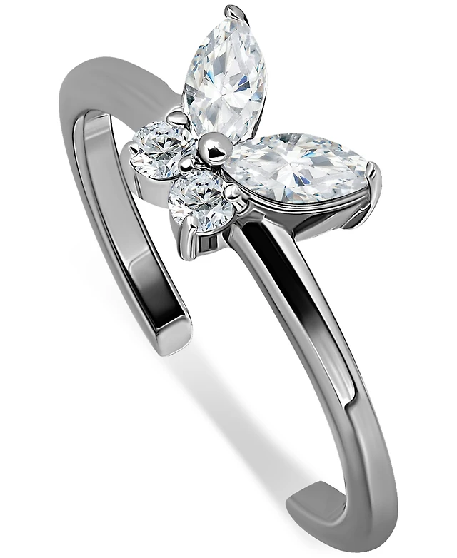 Cubic Zirconia Multiple Butterfly Ring 14k Gold-Plated Sterling Silver