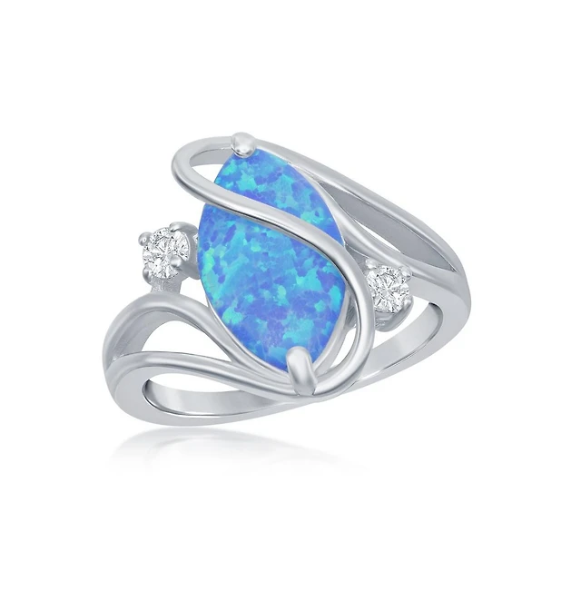 Caribbean Treasures Sterling Silver Synthetic Mom Opal heart & Cz Ring