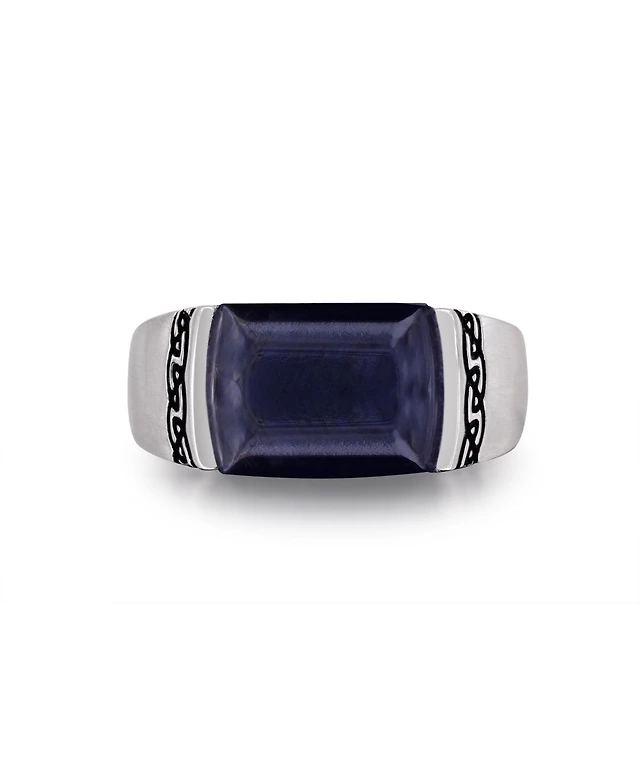 Onyx Emerald-Cut Split Shank Polished Statement Ring Sterling Silver