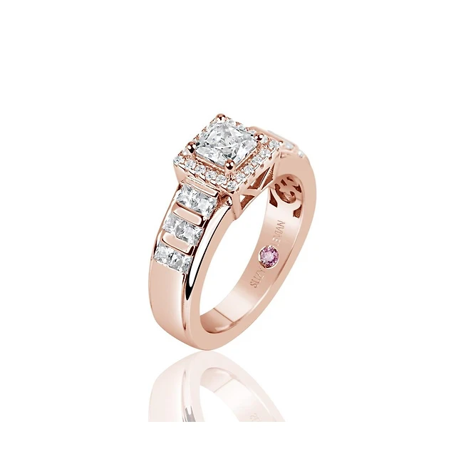Suzy Levian New York Sterling Silver Cubic Zirconia Pink Engagement Ring