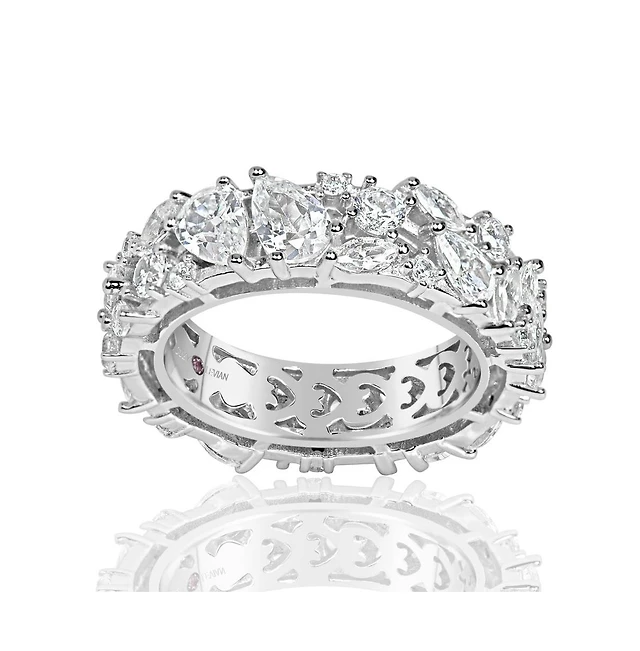 Suzy Levian Sterling Silver Cubic Zirconia Micro Pave Wide Band Ring