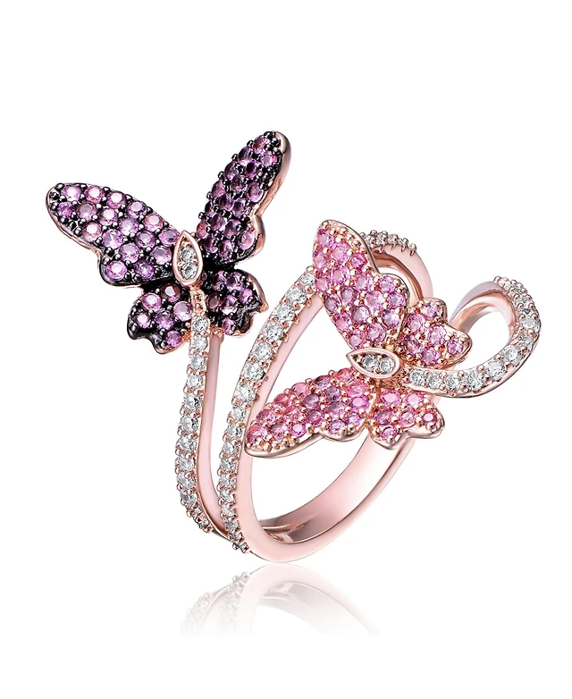 GigiGirl Sterling Silver with 18K Rose Gold Plated Red Cubic Zirconia Small Butterfly Ring
