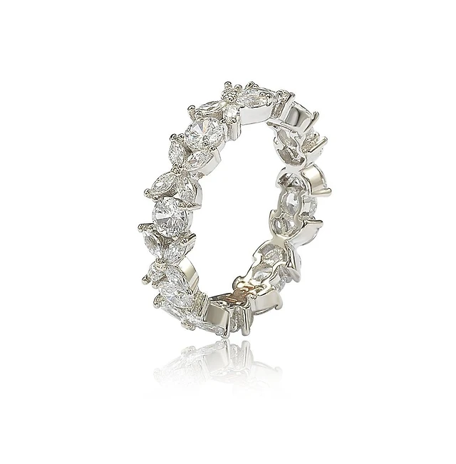 Suzy Levian Sterling Silver Cubic Zirconia Cutout Eternity Band Ring