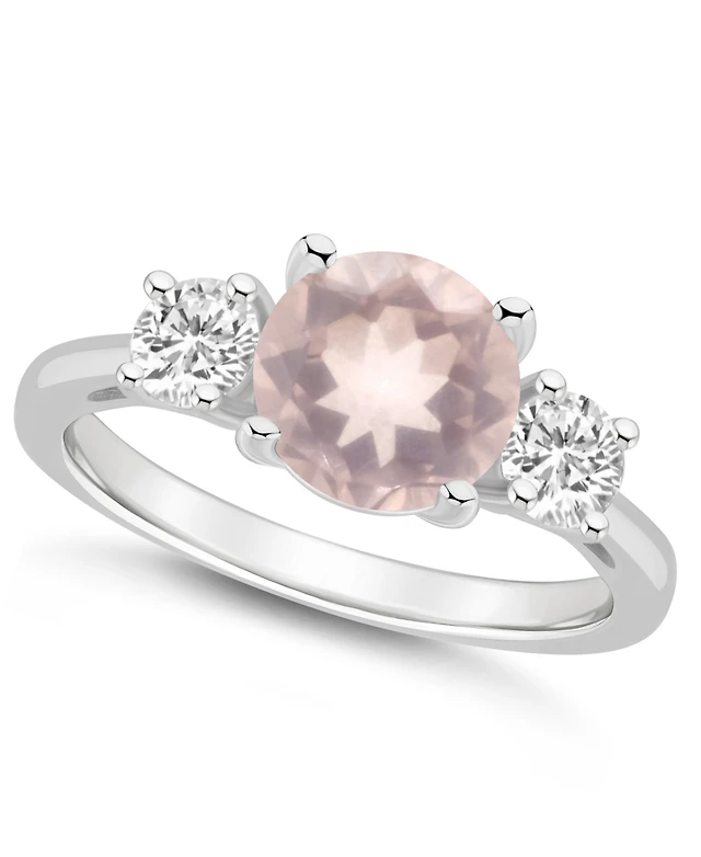 Macy's Women's Rose Quartz (1-3/5 ct.t.w.) and White Topaz (3/4 3-Stone Ring Sterling Silver