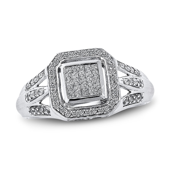 Hallmark Diamonds One Love Framed Quad Ring 1/3 ct tw Sterling SIlver