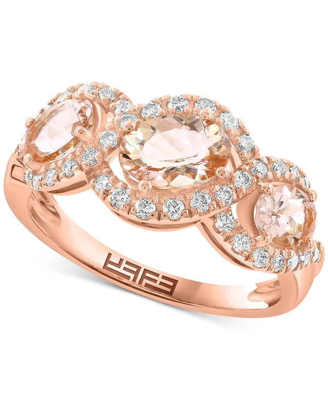 Oval Morganite and 1/4 CT. T.w. Diamond Ornate Frame Multi-Row Crossover Ring in 10K Rose Gold
