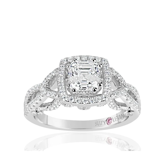 Suzy Levian Sterling Silver Asscher Cut Cubic Zirconia Center Stone Ring