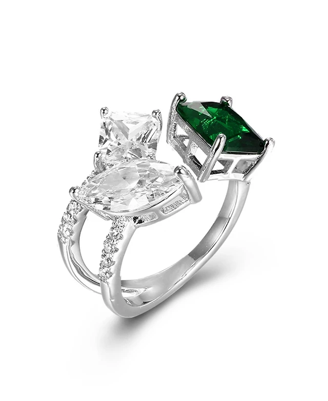 Cubic Zirconia Sterling Silver and 14K Gold Over Multishape Fashion Ring