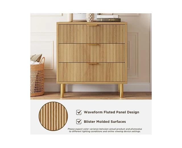3 Drawer Dresser for Bedroom, 30” Tall Dresser Organizer with Metal Legs, Modern Wood Chest of Drawers for Bedroom, Hallway, Home Office