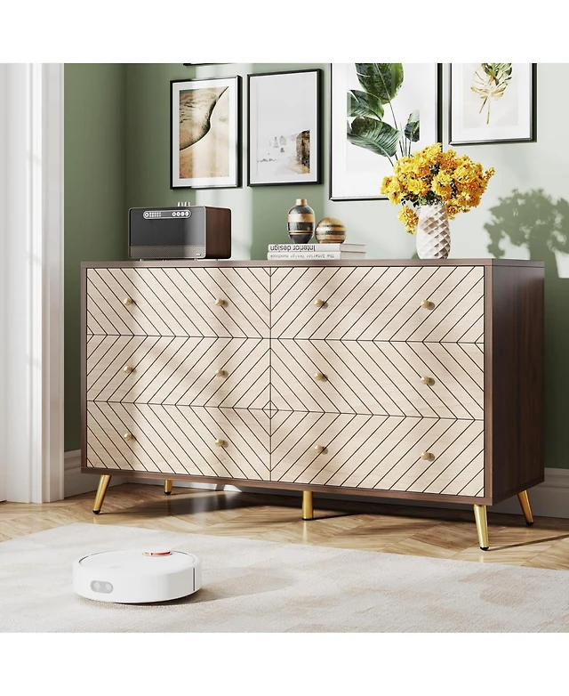 gaomon Modern 6 Chest Of Drawer Dresser, Modern Dresser With Deep Drawers And Nickel Round Handle, Wood Organizer Storage Cabinet For Bedroom, Living