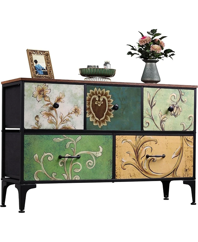 Sorbus 5 Drawers Dresser- Storage Unit with Steel Frame, Wood Top, Fabric Bins - for Bedroom, Closet, Office and more