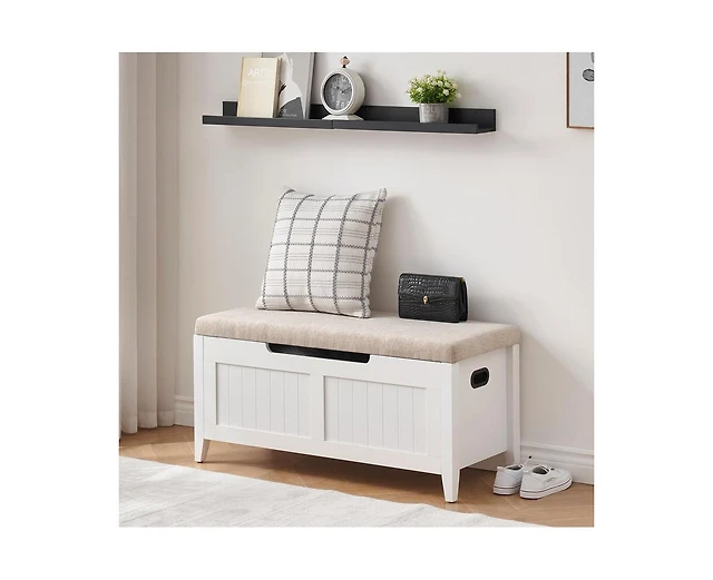 gaomon Storage Chest, Storage Trunk with Cushion Seat, 2 Safety Hinges, Storage Bench, Wooden Storage Organizer, Shoe Bench for Entryway, Bedroom