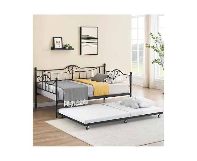 Sugift Twin Metal Daybed with Trundle Lockable Wheels