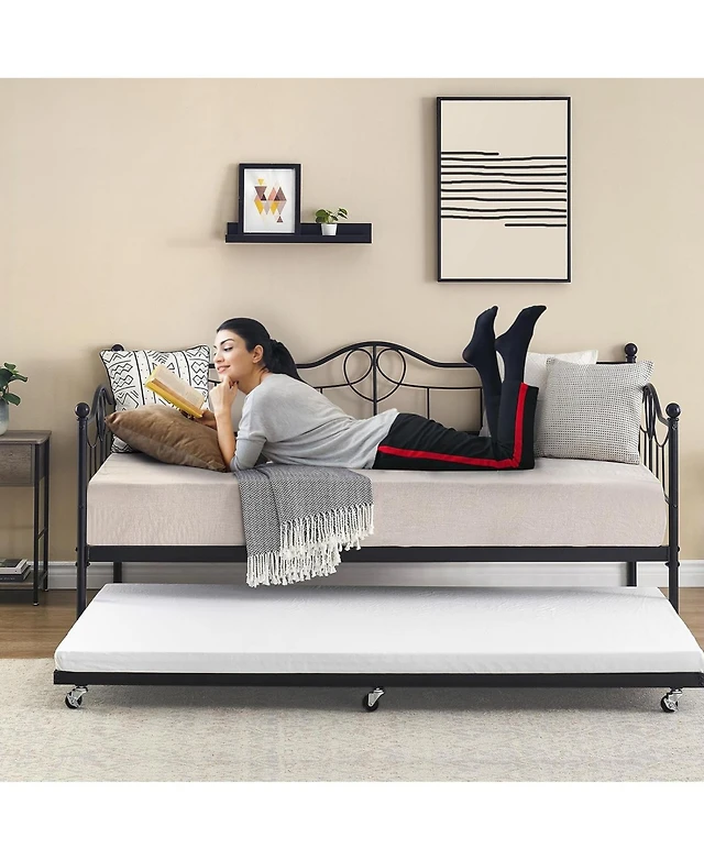 Sugift Twin Metal Daybed with Trundle Lockable Wheels