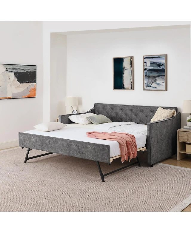 Clihome Modern Upholstered Trundle Daybed with Diamond Button Tufting