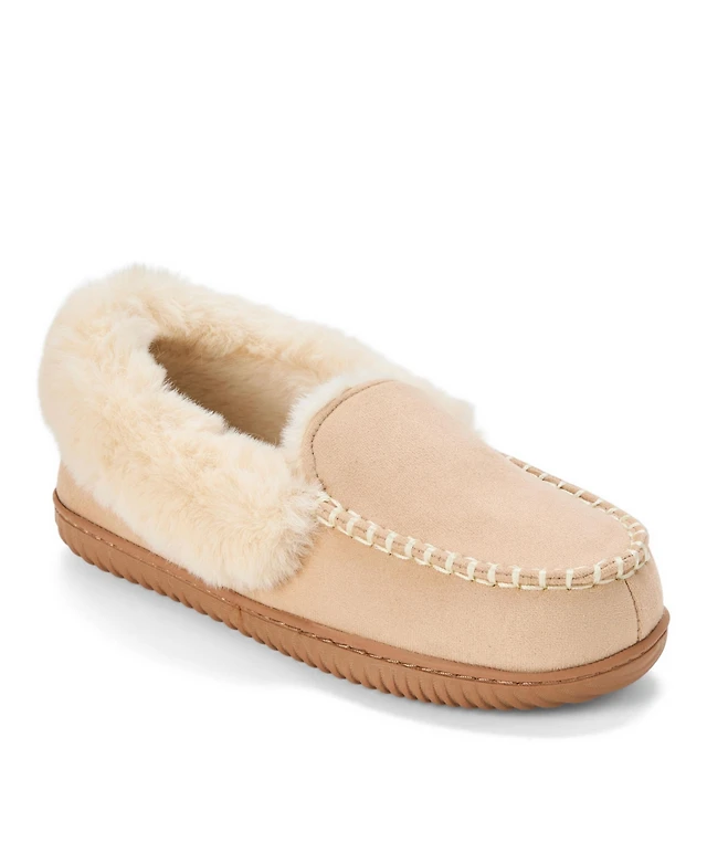 Dearfoams Women's Genuine Suede Fold Over Moccasin House Shoe Slipper