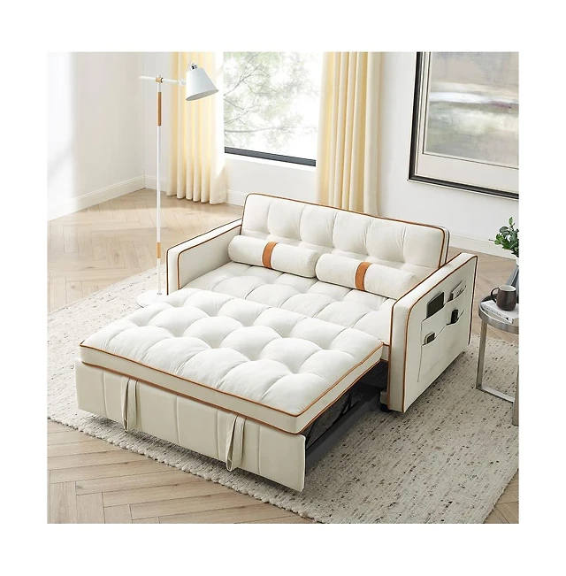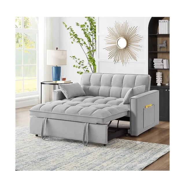 Maison Boucle Velvet Loveseat Sofa Bed with Pull-Out Sleeper, 3-in-1 Convertible Couch Storage Pockets & Tufted Back for Small Spaces-Maison Bouc