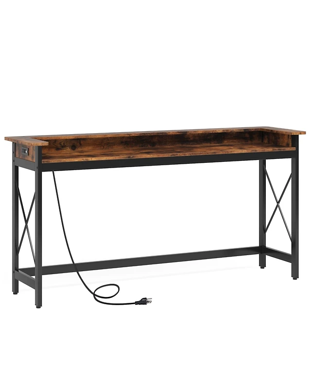 Tribesigns Console Table, 63-Inch Narrow Sofa Entryway Table with 2-Tier Storage Shelf, Wood Hallway Behind Couch Table for Living Room, Rustic Brown