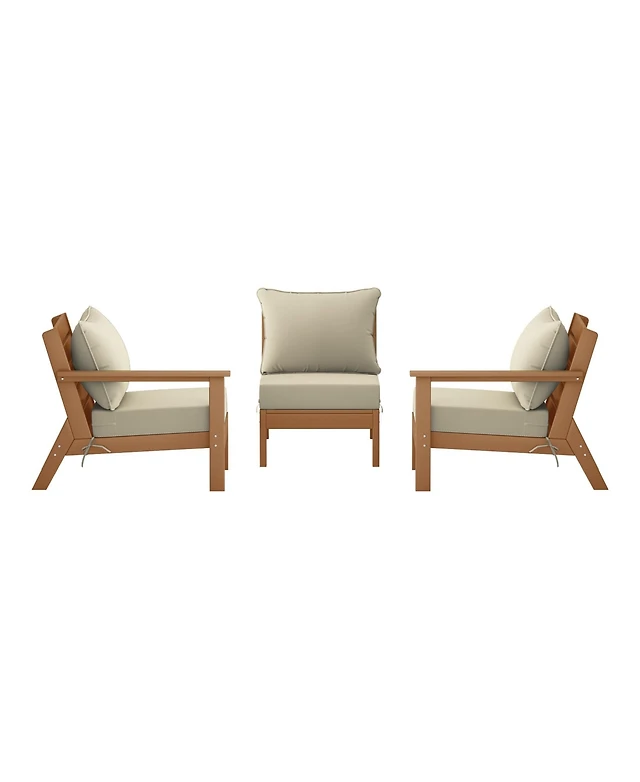 Errol 4 Piece Faux Rattan Patio Furniture Set With 2 Chairs And Sofa With Removable Beige Cushions And Table