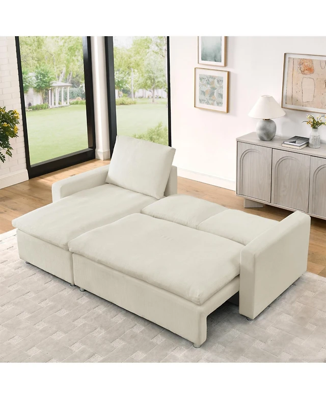 Streamdale 3-in-1 Velvet Sofa Bed with Usb, Phone Stand, and Adjustable Back (Beige)