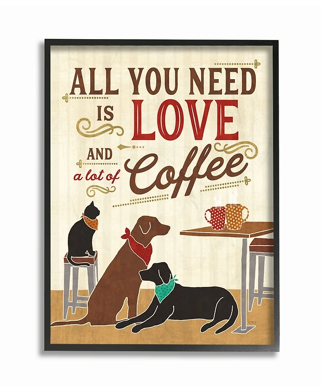 Stupell Industries All You Need is Love and Coffee Cats Dogs Framed Giclee Art