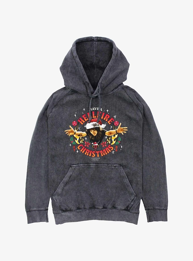 Stranger Things Eddie Munson Hellfire Christmas Mineral Wash Hoodie
