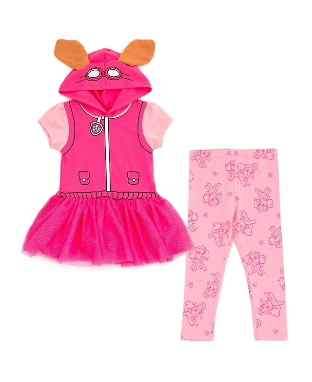 Paw Patrol Girls Hooded Cosplay T-Shirt Dress and Leggings Outfit Set to (2T - 7-8)