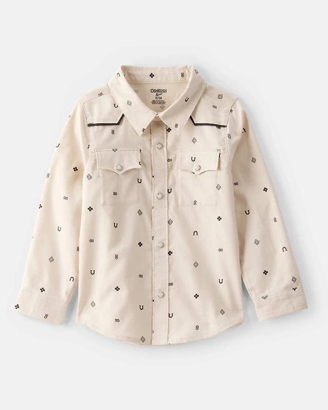 Toddler Boy Western Print Cotton Long-Sleeve Button-Down Shirt - Ivory