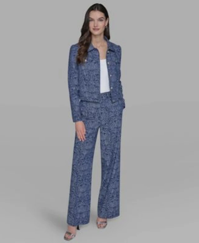 Tommy Hilfiger Womens Open Front Fringe Trim Jacket Button Trim Sleeveless Top Denim Sailor Pants
