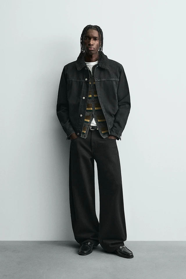 Z1975 FAUX FUR LAPEL CROPPED DENIM JACKET