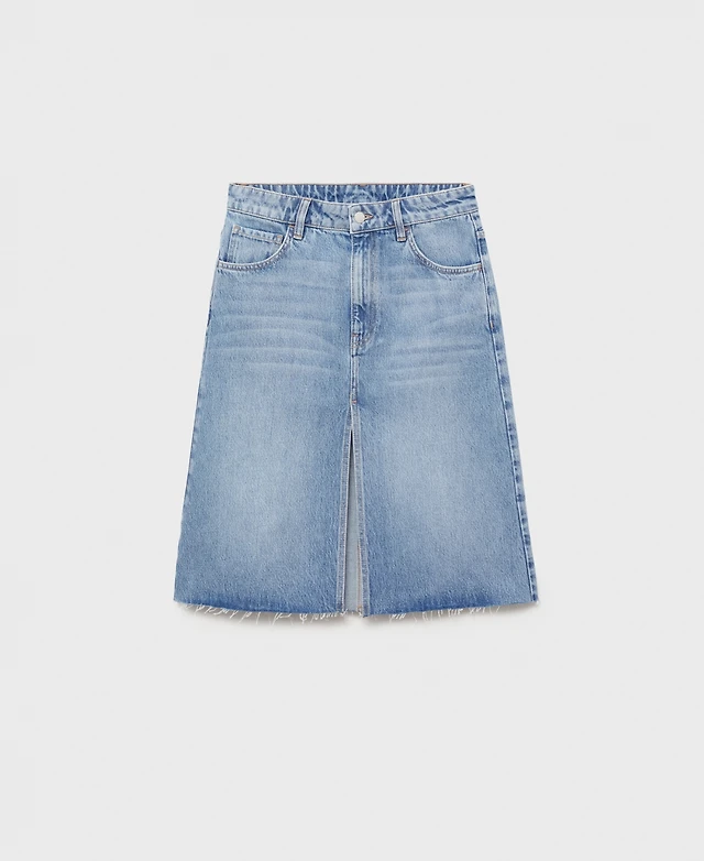 Petite Refined Denim Midi Skirt Classic Mid Indigo