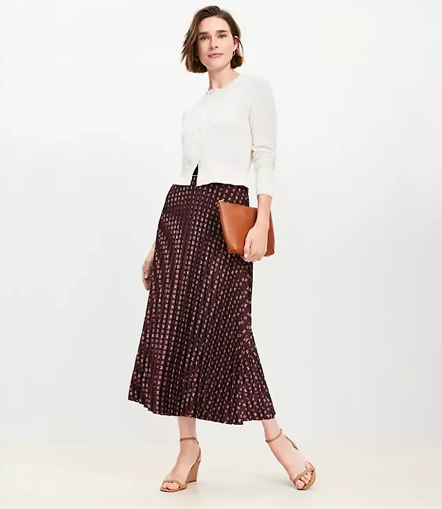 Bow Pleated Midi Skirt
