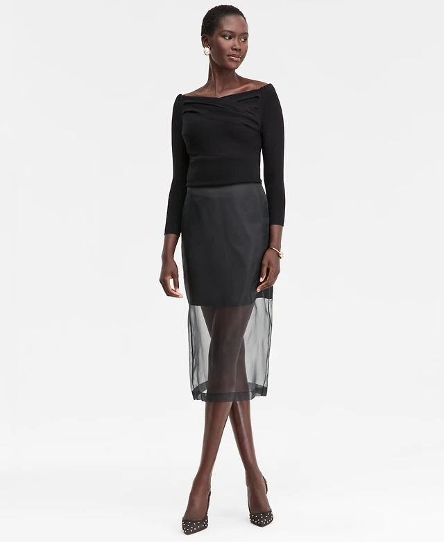I.N.C. International Concepts Womens Grommet Trim Sweater Tank Midi Skirt