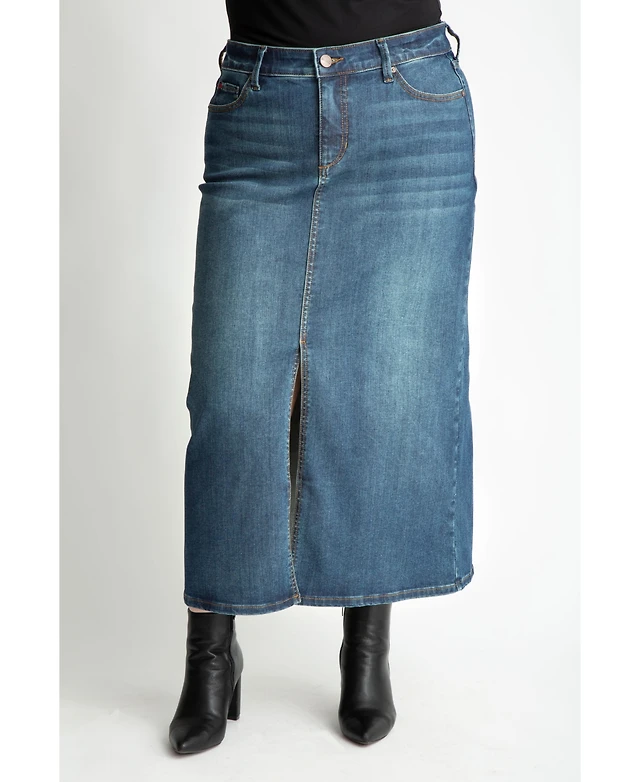 Shyanne Women's Medina Medium Wash Mid Rise Maxi Denim Skirt