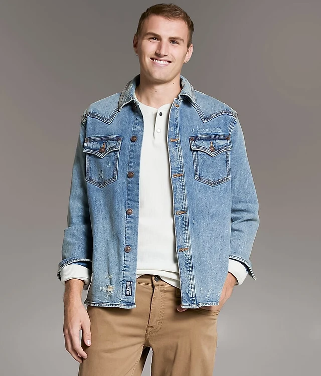 DETACHABLE FLEECE HOOD DENIM OVERSHIRT