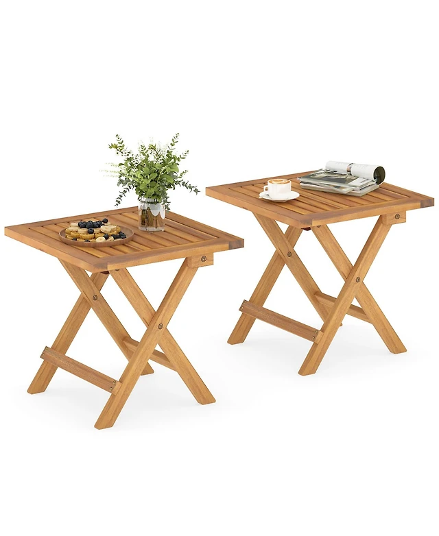 Gymax 2 Pcs Outdoor Pe Rattan Side Table with Umbrella Hole Square Patio End Table